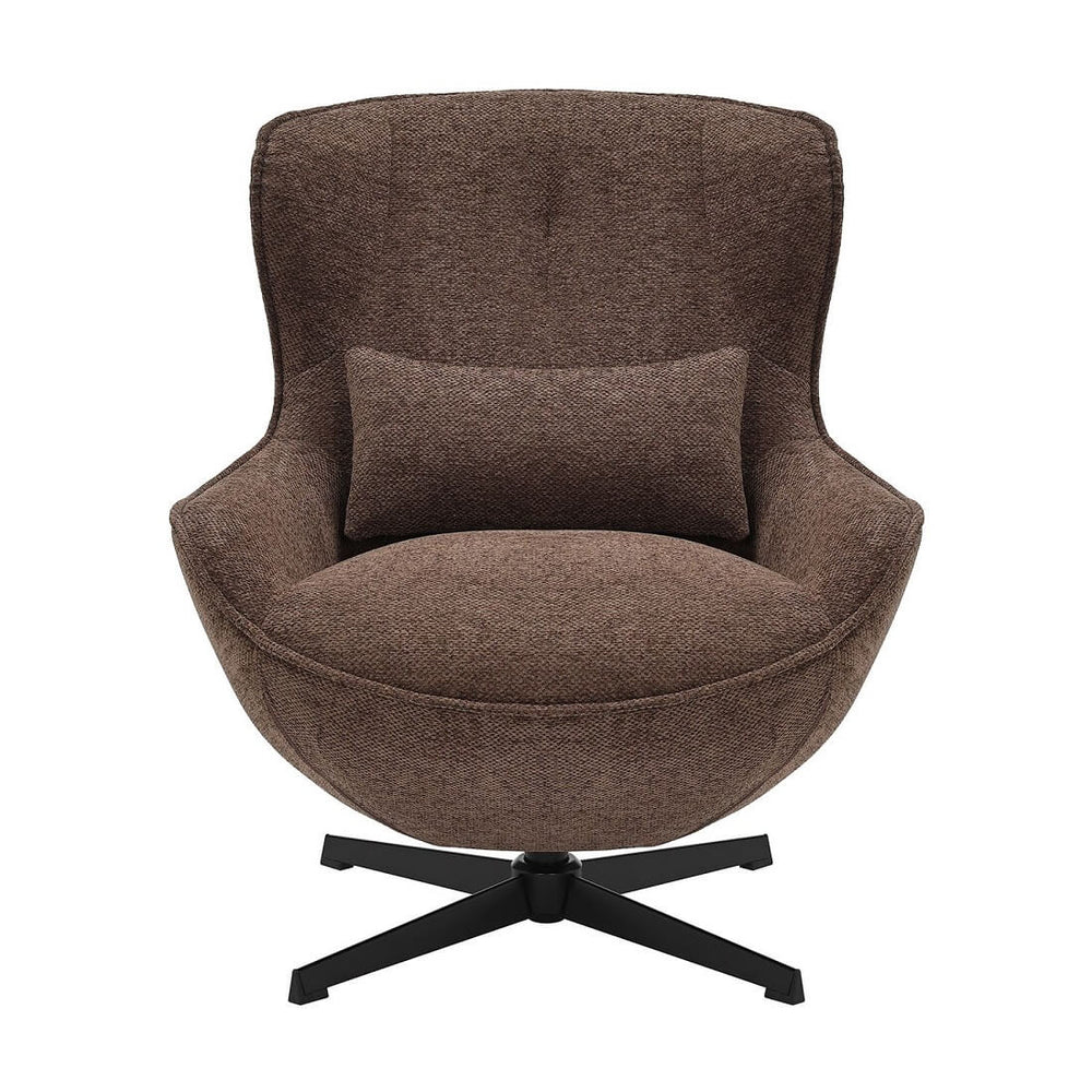 The Orlena armchair combines soft curves with a compact, sculptural form that embraces the body in comfort. Its supportive backrest and additional cushion enhance relaxation, while the swivel metal base adds a modern and practical touch. Orlena is perfect for contemporary living rooms, stylish offices, or cozy lounge areas.