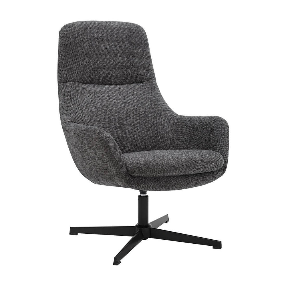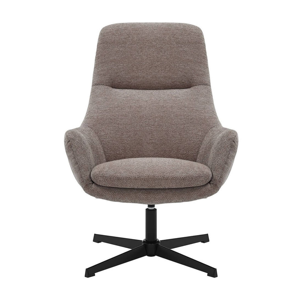 The Lucenza armchair features a sleek, contemporary silhouette designed for comfort and style. Its gently curved backrest flows seamlessly into supportive armrests, creating a cozy and inviting seat. The swivel metal base adds practicality and modern appeal, making Lucenza a perfect addition to living rooms, offices, or elegant lounge spaces.