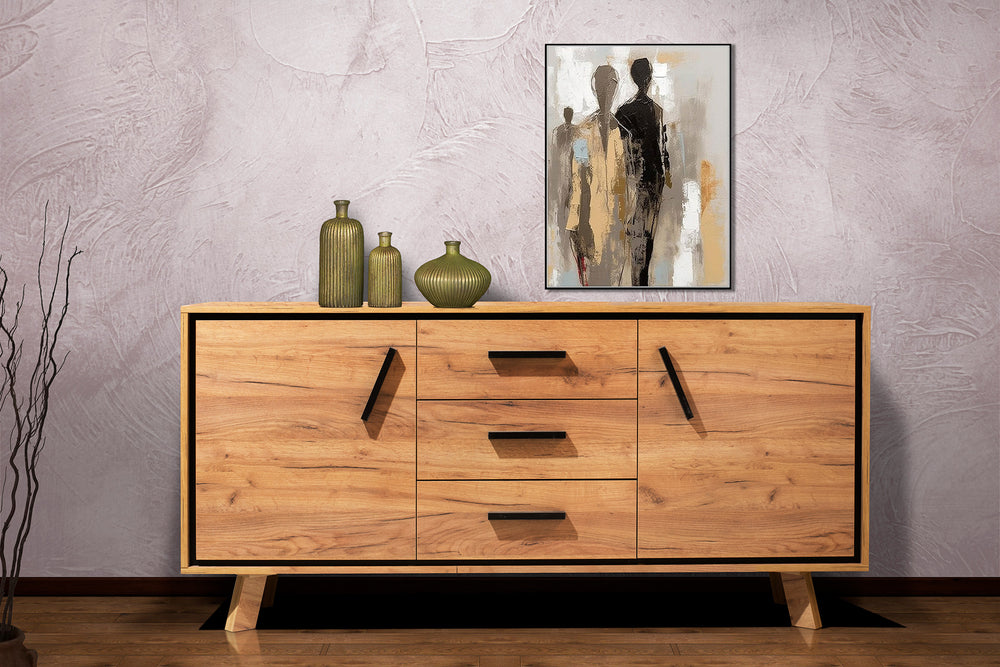 “Forma” is an elegant and modern storage unit that combines the natural beauty of wood with the dynamism of black details. Its design is based on simplicity, but with creative interventions, such as the slanted handles, that add unique character.