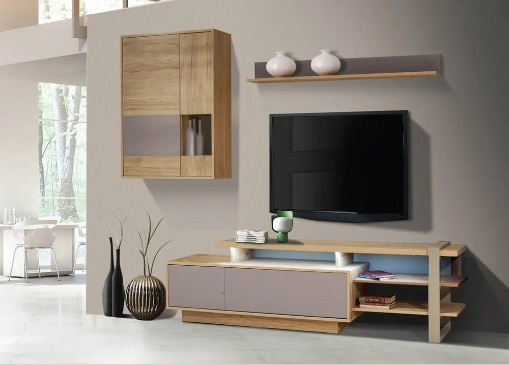INFINITY composite made of artificial embossed veneer. One of the most beautiful living room compositions. A composition that stands out, very modern that will surely impress with the details and the play of colors that you can make as well as organize your space!