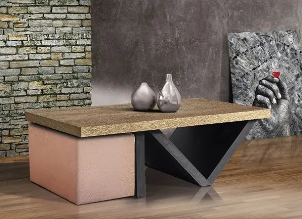 NUEVO coffee table made of high-strength CPL with the all wood option on the legs and surface gives a more modern image. Warm, high-quality and aesthetic wood contribute to a result with timeless status and refinement while the stool it features saves you space. A special decorative intervention, the asymmetries on its legs.