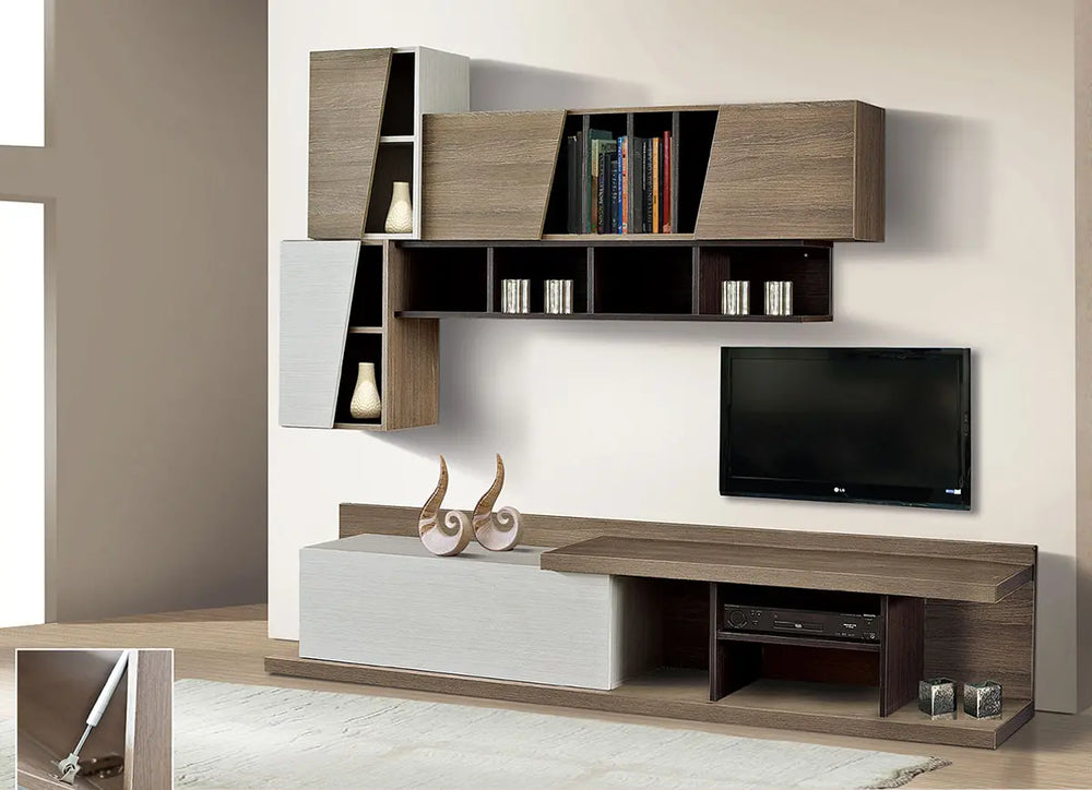 POPULAR composite made of artificial embossed veneer. Uniquely inspired and designed composition that makes an impression and stands out in the space. It is a modern choice for your living room with lots of storage space.
