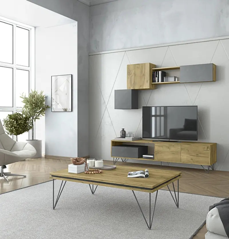 STONE composite made of artificial embossed veneer. A special composite that gives you the opportunity to play with colors and take your living room to another dimension. Its metal legs give a pleasant touch and utility to the furniture, as well as its storage spaces can meet all your needs.