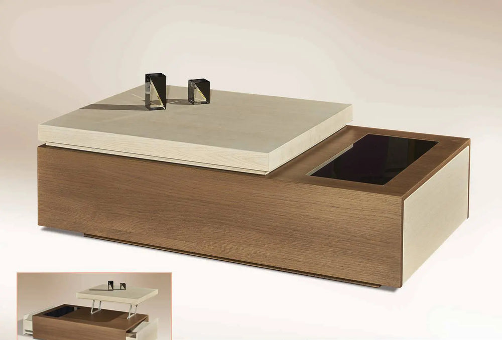 THALEIA coffee table made of oak wood. Modern design and elegance meet functionality. Elegant design and waiter are the dominant impressive elements of the table as well as its spacious storage spaces. This furniture will bring vibrancy and style to your living room.