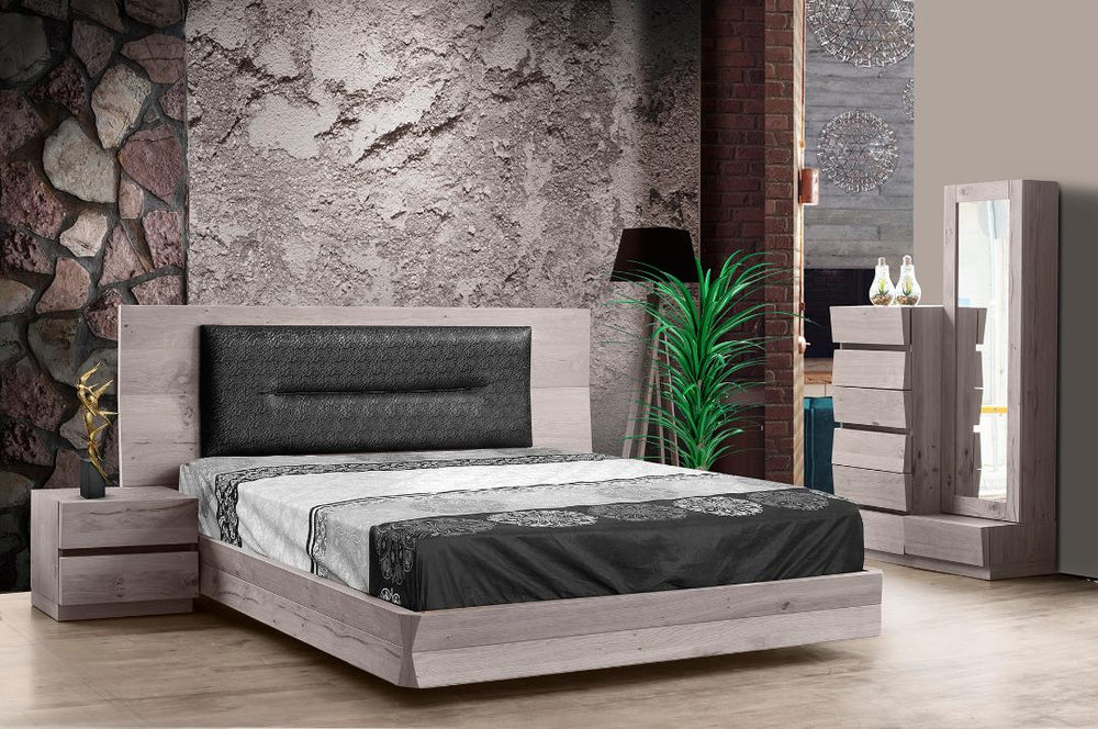 Diamond – Strong presence, refined elegance. The Diamond bedroom set combines modern design with bold character, featuring clean geometric lines and a striking upholstered headboard that adds depth and comfort. The light wood finish creates a balanced contrast with the darker details, giving the space a contemporary yet warm atmosphere. Paired with matching bedside tables, a tall chest of drawers, and a sleek mirror, Diamond offers practical storage wrapped in sophisticated style. Ideal for those who appreciate confident design and timeless aesthetics, Diamond transforms your bedroom into a space of comfort and distinction.