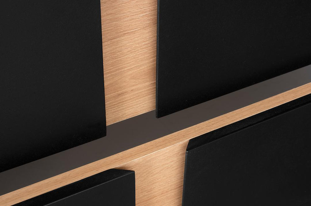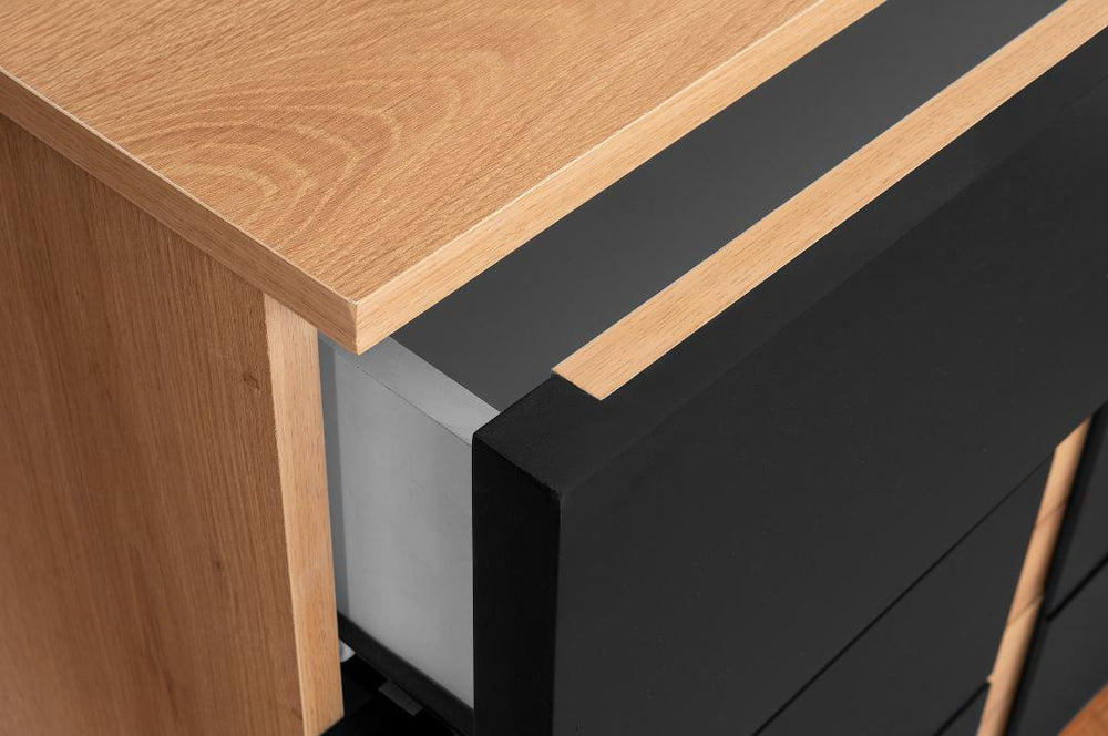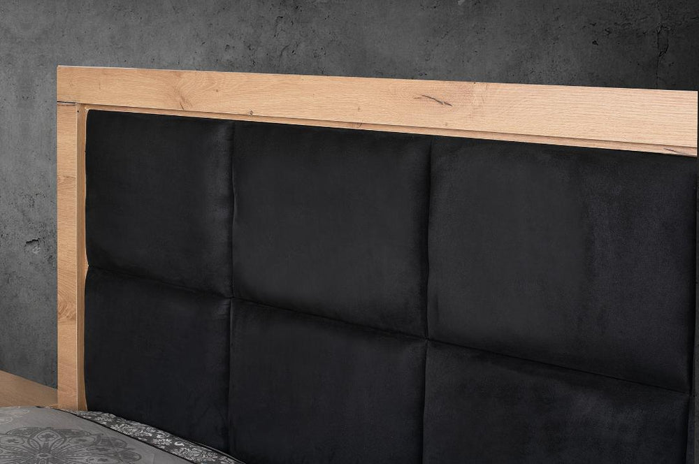 Galaxy – Bold design beyond the ordinary. The Galaxy bedroom set makes a powerful statement with its striking contrast between warm wood tones and deep black accents. The modern upholstered headboard with geometric panel details adds texture and comfort, while the distinctive base design gives the bed a dynamic, contemporary presence. Paired with matching bedside tables, a spacious chest of drawers, and a stylish mirror, Galaxy offers practical storage wrapped in strong, confident aesthetics. Perfect for those who love modern luxury with attitude, Galaxy transforms the bedroom into a space that feels sophisticated, dramatic, and unforgettable.